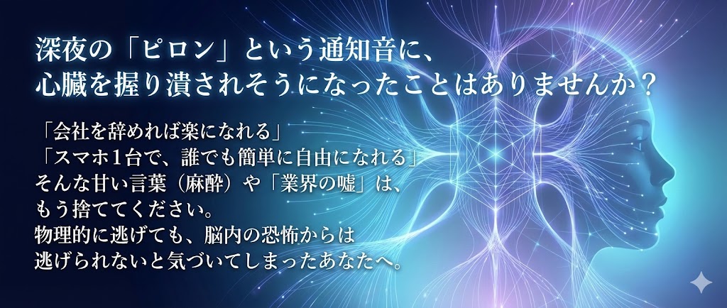 アテナ HSP・対人恐怖気質を持つWEBマーケター。 かつては上司の足音やスマホの通知音に過呼吸を起こすほどの「逃げ癖」の持ち主であり、ネットビジネス界隈の「強者の論理」に傷つけられた経験を持つ。 ある時、底辺から這い上がった「弱者の兵法」を持つ人物と出会い、覚醒。 現在は、その泥臭い兵法を「知的なロジック」に翻訳して発信しながら、顔出し・名前出しをせず静かにPC一台で生活する「自分だけの王国」を築いている。 モットーは「理解はしない。処理をする」